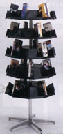 Le système de présentoirs circulaires rotatifs a fait ses preuves- plis de 100,000 sont déjà installés. Chaque module robuste, d'une seule pièce, tourne de façon indépendante présentant 75 titres; ils sont disponibles dans les couleurs suivantes: mastic, noir, jaune, rouge, bleu ou vert. Veuillez spécifier la couleur désiré au moment de placer votre commande.