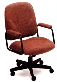 Fauteuil pivotant et inclinable (manuellement) à dossier surélevé. 58.4 x 69.8 x 99 cm (23" x 27.5" x 39")