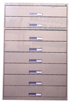 Numéro Tiroirs Dimensions extérieur Prix Microfilms (8 compartiments par tiroir) M55-811 6 101.5 x 91.3 x 45.7 cm (40" x 36" x 18") $1137.00 M55-813 8 135.9 x 91.3 x 45.7 cm (53-1/2" x 36" x 18") $1463.00 M55-815 10 166.3 x 91.3 x 45.7 cm (65-1/2" x 36" x 18") $1804.00 Microfiches (4-1/2 par tiroir) M55-810 6 101.5 x 91.3 x 45.7 cm (40" x 36" x 18") $1066.00 M55-812 8 135.9 x 91.3 x 45.7 cm (53-1/2" x 36" x 18") $1368.00 M55-814 10 166.3 x 91.3 x 45.7 cm (65-1/2" x 36" x 18") $1685.00