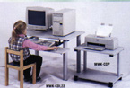Pour un grand poste de travail, la série WKCDL comprend une surface de travail de 61 x 91.4 cm (24" x 36") à laquelle s'ajoute un espace additionnel pour la souris et un tablette clavier escamotable. Tout comme les autres postes de travail "Tuffyland", les hauteurs de surface de travail disponibles sont de 45.7 cm (18"), 50.8 cm (20") et 55.9 cm (22"). Le fini est gris pâle.