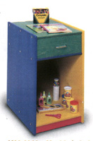 Un meuble de rangement avec tiroir pour protéger et organiser fournitures, papiers et autres matériel. Le dessus peut accomoder un petit présentoir alors que l'espace intérieure permet de ranger des piles de matériel ou d'y mettre des titres en évidence.