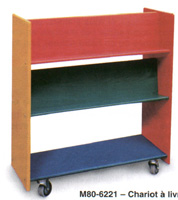 Tout marche sur les roulettes avec ce chariot de grande mobilité qui permet de transporter ou d'étaler des livres. Muni de quatre tablettes inclinées et une tablette inférieure à l'horizontale il offre de la place pour de nombreux titres. ...En voiture!