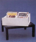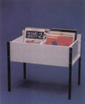Un bac à disques attrayant et économique. Ces présentoirs peuvent être utilisés pour l'étalage des disques ou des livres. Les pieds sont fabriqués d'acier 2.5 cm (1") carré et sont peinturés noir (émail cuit). Dimensions: la boîte mesure 76 x 48.3 cm (30" x 19"), hauteur à l'avant 22.9 cm (9"). La largeur intérieure de chaque compartiment est de 33 cm (13").