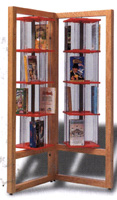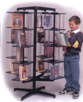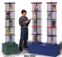 M80-3708 L'unité de base Junior peut contenir jusqu'à 200 grands livres de poche (dos de livres jusqu'à 22.5 cm (8-7/8") ou 96 vidéocassettes. Veuillez spécifier base chrome ou noire en commandant l'îlot à rotor et chêne pâle, chêne moyen ou noyer pour les cadres en bois et rouge, bleu, vert ou chêne pâle pour le présentoir à rotor. Indiquez aussi le choix de couleur pour les tablettes: rouge, bleu, vert, arc-en-ciel, noir, mastic ou transparent. Enseignes disponible pour ces items à la page 99.