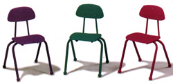 La conception des chaises "DinoLine" offre un dossier et un siège de forme ergonomique en polyéthylène solide de couleur très durable. Elles épousent les formes arrondies du corps et l'avant du siège est recourbé pour plus de confort. Le cadre, de tubes d'acier de jauge 18 millièmes soudés au électrostatique et durci par cuisson. Les pattes sont munies de boules de fibre de verre "DinoLine" de couleur, moulées dans un nylon super résistant.