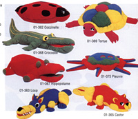 Numéro Description Largeur/Diamètre Profondeur Hauteur Prix M01-362 Coccinelle 106.7 cm (42") 78.7 cm (31") 30.5 cm (12") $220.00 M01-363 Loup 185.4 cm (73") 88.9 cm (35") 30.5 cm (12") $220.00 M01-365 Castor 160 cm (63") 71.1 cm (28") 25.4 cm (10") $220.00 M01-367 Hippopotame 114.3 cm (45") 50.7 cm (20") 35.5 cm (14") $220.00 M01-368 Crocodile 149.8 cm (59") 43.1 cm (17") 25.4 cm (10") $220.00 M01-369 Tortue 129.5 cm (51") 68.5 cm (27") 25.4 cm (10") $220.00 M01-375 Pieuvre 177.8 cm (70") 177.8 cm (70") 40.6 cm (16") $220.00