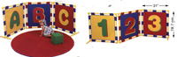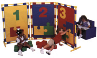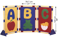 Appliqués graphiques d'A, B, C et symboles correspondantes. 122 cm (48"0 de haut. Ces trois cloisons se fixent ensemble pour divers usages. Pieds stabilisateurs de sûreté inclus.