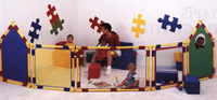 Idéal pour une aire de jeu pour les 3 à 6 ans. Sert aussi à camoufler espaces de rangement ou délimiter l'espace d'activité ou autres usages selon votre imagination.
