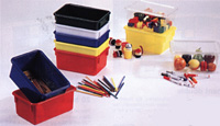 En plastique résistant; choisissez, soit transparent, ou l'une des cinq couleurs vives. Conçus pour les casiers de nos unités de rangement. Garde le matériel rangé et ordonné! Les couvercles moulés assurant une fermeture ajustée et ne tombent pas. Assez solide pour supporter un adulte. 20.3 x 29.2 x 14 cm (8" x 11.5" x 5.5").