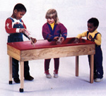 Avec plateau de palstique de 6 pouces de profondeur avec drain et bouchon de caoutchouc; facile à nettoyer. Le meuble de soutien robuste est fait d'érable solide avec deux de ses pattes sur roulettes. Vient avec couvercle. 61 x 122 x 61 cm (24" x 48" x 24")