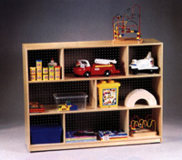 La meilleur solution traditionnelle pour la classe ou la garderie. D'un généreux 91.5 cm (36") de hauteur, cette unité est construite de contre-plaqué 1.5 cm (5/8") 11 plis en bouleau; assez robuste pour garde matériel et fournitures propres et bien rangés. Huit cases de rangement; sur roulettes de qualité. 91.5 x 122 x 30.5 cm (36" x 48" x 12")