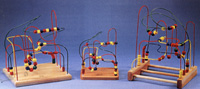 tous nos bouliers labyrinthes sont des merveilles, à 3 dimensions, de broches colorées agencées en parcours originaux. Les broches sont fixées solidement aux bases pour plus de stabilité et sécurité. On fait circuler les boules de bois de couleurs vives sir ces broches. Puisqu'il n'y a pas de pièces à ramasser, ces jouets sont les préférés des pédiatres, des professeurs et des parents (sans parler des enfants!). tous sont des outils formidables pour développer les habiletés visuelles et motrices, la distinction de couleurs, formes, dimensions, pour apprendre à compter, pour maîtriser les relations spatiales, le développement du language et le divertissement pur et simple. Ces jouets durables n'ont pas d'angles pointus ou de surface abraisives et les pièces mobiles ne peuvent être enlevées.