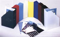 En plastique durable dans les couleurs: vert, rouge, bleu ciel, jaune, bleu foncé, bourgogne, noir, et transparent . Dimensions: 102mm larg. x 229mm prof. x 292mm haut. (étiquettes incluses 2" x 3" amovibles