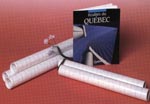 Une couverture de deux panneaux de plastique transparent et adhésif (bande adhésive très rigide et flexible de 22mm (.88") de largeur qui permet de fixer solidement sa partie centrale au dos du livre.