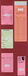 Papier moyen de 5 x 12.5 cm (2" x 5"). Avec message imprimé: "Ce livre doit être retourné avant le premier cours du prochain jour de classe." Disponible en rose. 1000 par paquet.