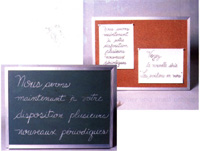 Lavables, avec rebord pour craies et brosses, encadrés d'aluminium. Disponibles en vert seulement.