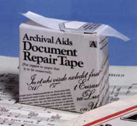 Un ruban extrêmement mince et transparent, fixé par pression, utilisé pour réparer documents en papier, pages, livres, etc. Lorsqu'appliqué correctement, avec plioir, sur une feuille blanche, il devient pratiquement indétectable. Il ne durcit pas avec le temps, ne jaunit pas; il est de pH neutre avec un adhésif acrylique, réversible avec les diluants à base d'essence minérales. A été pleinement mis à l'épreuve et est approuvé par de nombreuses agences gouvernementales et est un préféré des collectionneurs et de conservateurs. Facile à utiliser et tout à fait sécuritaire. 1" de largeur par 98' de longeur. Empaqueté dans un boîte distributrice pratique.