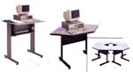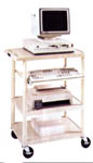 Avec tablette coulissante ajustable pour clavier et tablette fixe pour imprimante. Comprend l'ensemble de fiches électriques. Sur roues pivotantes de 10 cm (4"), dont deux verrouillables. Spécifiez gris ou mastic. Assemblage requis.