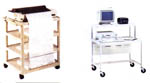 Avec guide de papier chromé; sur roulettes pivotantes de 5 cm (2"), dont duex verrouillables. 68.5 cm (27") hauteur totale. Spécifiez la couleur: mastic ou noir. Assemblage requis.