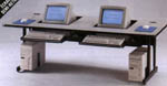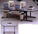 Des plateaux pour ordinateur, des tablettes escamotables pour clavier et un receptacle des gestion de câbles complémentent les postes à une ou deux personnes. Les pattes robustes en acier permettent d'ajuster la hauteur de l'unité de 66 cm (26") à 81.3 cm (32"). Toutes les pièces d'acier sont recouvertes d'un fini poudre pour plus de durabilité; les surfaces de travail en stratifié haute presion de 3.2 cm (1-1/4") sont disponibles en sept finis attrayantes et agrémentées de moulures pare-choc en vinyle.