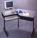 La surface de bureau de 130.3 x 61 cm (51-1/2" x 24") est complété par une tablette de 50.8 x 61 cm (20" x 7") est exposé. La gestion du câblage est opéré grâce à un espace en retrait derrière le clavier et un conduit avant et arrière. Le bureau est protégé par une moulure antichoc sur tous les rebords. Trois ouvertures de 5 x 7.5 cm (2" x 3") sont distribuées sur les panneaux de dessus et à arrières pour accommoder les besoins de tout type d'ordinateur.