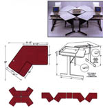 Le bureau ParaBureau, unique en son genre, jumelle l'espace pour ordinateur à une large surface de travail; il est idéal pour le traitement de texte et les labos informatiques où un contact visuel entre l'instructeur et l'élève est souhaitable. La forme légèrement angulaire offre une grande surface de travail adjacente au clavier. Deux ParaBureau ou plus peuvent être combinés dans une gamme de configurations originales. Le dessus du bureau est en stratifié haute pression. Les moulures et les composantes métalliques sont noires.