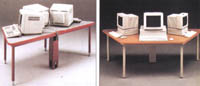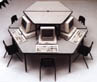 Choisissez entre la table trapèze pour trois, la carrée pour quatre ou l'hexagonale pour six étudiants (la forme hexagonale est formée de deux tables trapèzes). Deux dimensons de trapèzes sont disponibles: le petit trapèze de 101.5 x 20.32cm (40" x 80") accomode les terminaux et les petits ordinateurs personnels; le grand trapèze de 127 x 243.9 cm (50" x 96") accomode les plus gros.