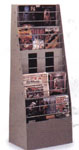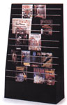 Ces présentoirs en acier soudé peuvent recevoir documentation, revues, vidéocassettes et disques compacts. les tablettes permettent une vue complète du matériel étalé; celles-ci offrent une profondeur de 3.9 cm (1.5") et une hauteur de 29.2 cm (11.5") dont 22.8 cm (9") sont visibles. Deux tiges métalliques, équippées de séparations ajustables en plastique, grande dimension offrent, en option, un stratifié fini noyer fixé au panneau avant. Spécifiez la couleur de l'émail: Sable, gris ou noir.