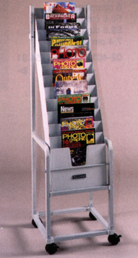 Présentoir mobile seize pochettes avec roulettes de 2" dont deux sont munies de freins verrouillables. $243.00